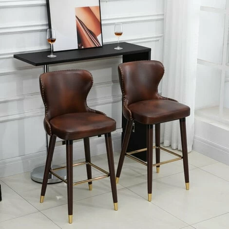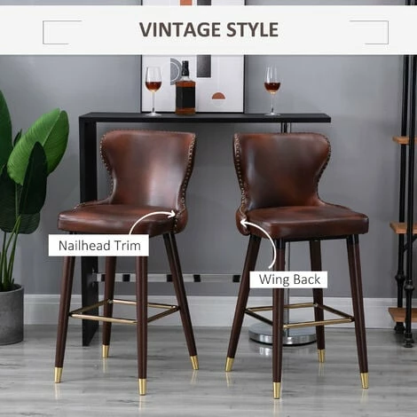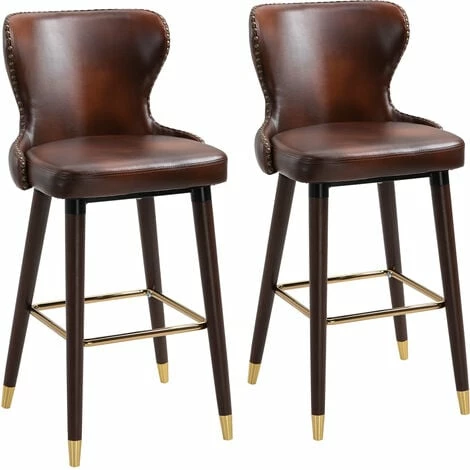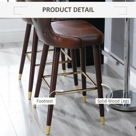 Accent your kitchen counter or seat a guest with these kitchen stools with backs from HOMCOM. The contemporary counter stools are covered by soft PU leather with high comfort. The padded seat and backrest gives you enough support, while the footrest helps you keep a relaxed body posture and reduces your body pressure. These bar chairs stand upright and steady when in use, thanks to its solid rubber wood base.