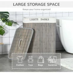 Keep dirty clothes stored and easy and efficient way – with this laundry basket from HOMCOM. There are two sections – one ‘light’ and one ‘dark’, meaning less mix-ups when washing – less clothes ruined. The shell is made from natural rattan, so it’s lightweight and naturally resistant to moisture. Perfect for bathrooms and kitchens. Comes complete with handle on the lid and side to carry around easily.