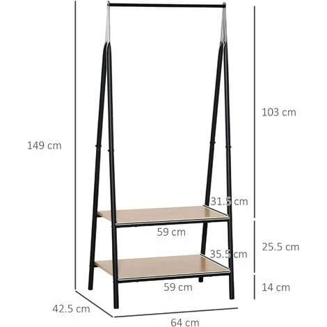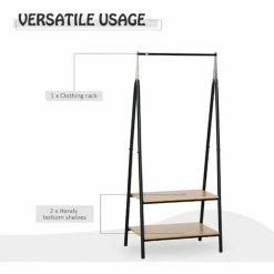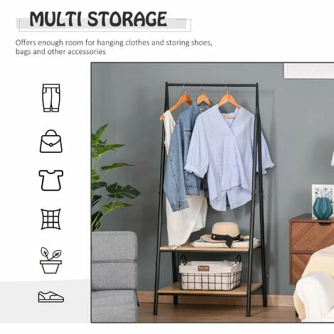 Keep your clothes neatly organised with this stylish and minimalistic clothes rack from HOMCOM. The frame is made from high quality steel to ensure durability and many years of use, and the bottom features two MDF board shelves to store shoes. Whether placed in the bedroom as an open wardrobe or in the hallway as a coat rack, this is the perfect space-saving piece of furniture for each and every home.