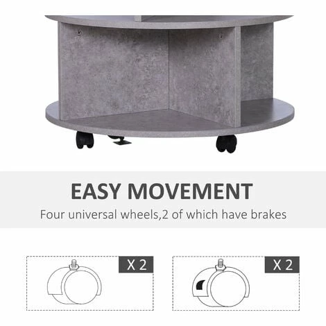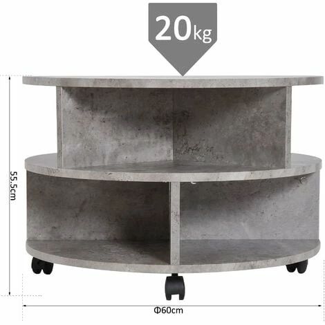 This 2-tier round-shape coffee table from HOMCOM is a great addition to your home. Made from engineered board covered with PVC for long term durability and easy maintenance. This end table, complete with 8 sector dividers, provides enough room for your books, magazines, newspapers, notebook etc. It sits on 4 universal casters for easy movement in your room. With practical function and concise design, this coffee table will be a perfect furniture to add in your living room !