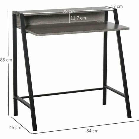 • Dimensions: 84L x 45W x 85Hcm. Top storage: 11.7H x 78L x 17Wcm. Desktop to floor: 73.5Hcm
