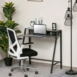 A minimalistic design, finished in a fresh and neutral colourway – this workstation desk, from HOMCOM, will welcome itself into your home or office space with ease. Using solid steel for a frame which keeps itself balanced, it’s fitted with a particle board table top, which comes in a two-tier design: the main level gives you plenty of room to work, whilst the back shelf allows for storage of your working essentials. It’s finished with a melamine coating for light protection, as well as being easy to clean.