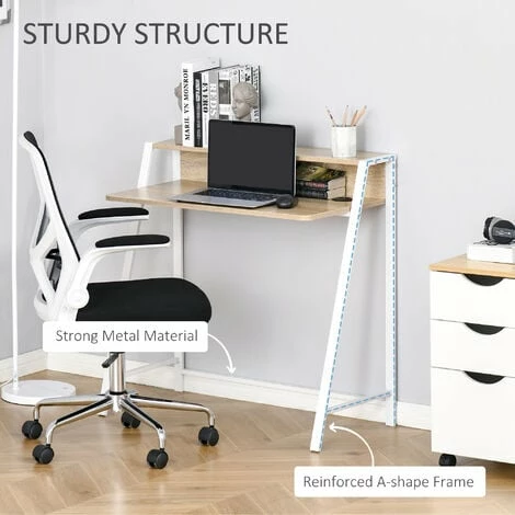 A minimalistic design, finished in a fresh and neutral colourway – this pc desk, from HOMCOM, will welcome itself into your home or office space with ease. Using solid steel for a frame which keeps itself balanced, it’s fitted with a board table top, which comes in a two-tier design: the main level gives you plenty of room to work, whilst the back shelf allows for storage of your working essentials. It’s finished with a melamine coating for light protection, as well as being easy to clean.