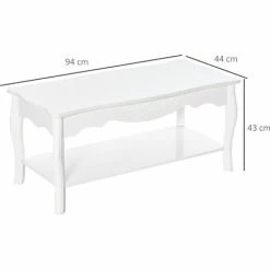This HOMCOM Coffee table in white will be a great addition to your living space. Designed with a bottom shelf for extra storage for books and magazines. The contemporary styling offers a rectangular shape with curved legs, with the ability to be moved easily with its lightweight construction. It is easy to keep clean with low maintenance, and will match room decor.
