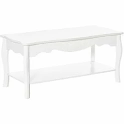 This HOMCOM Coffee table in white will be a great addition to your living space. Designed with a bottom shelf for extra storage for books and magazines. The contemporary styling offers a rectangular shape with curved legs, with the ability to be moved easily with its lightweight construction. It is easy to keep clean with low maintenance, and will match room decor.