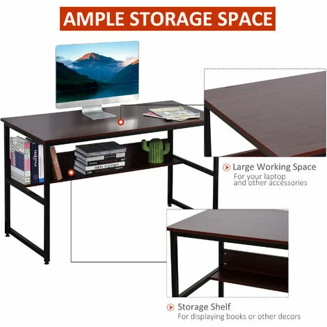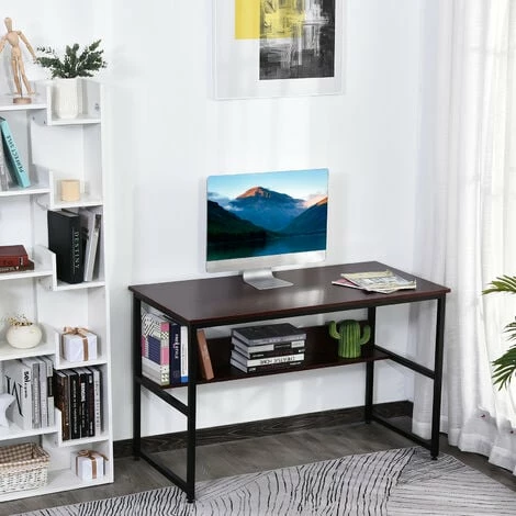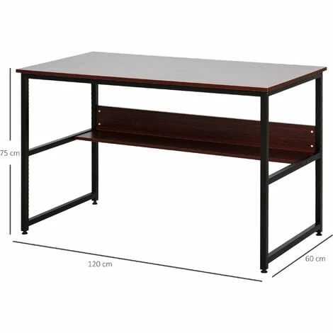 Create the perfect environment for working from home with this two-tier work desk from HOMCOM. It uses a metal frame for a tough and sturdy structure, with thick particle board shelves for a solid and flat surface to work from. Both shelves are covered with melamine, so they are smooth and are protected against lighting marks and damage. The bottom shelf features a back panel, which allows safe storage and out of sight. This office table can make your work enjoyable.