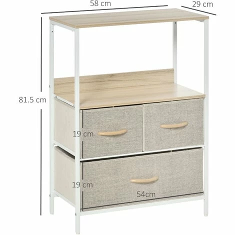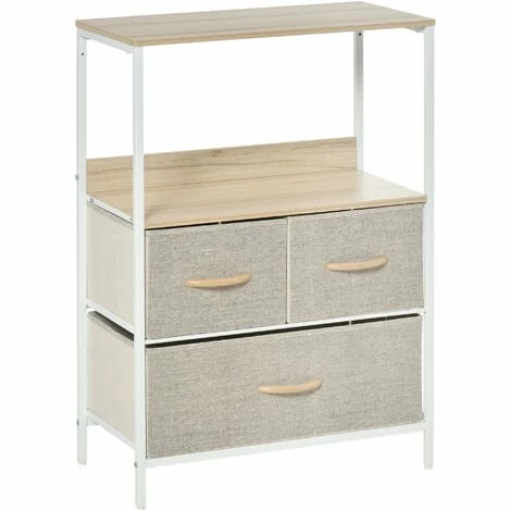 Opt for a soft approach to home storage – go for this fabric drawer unit from HOMCOM. Comes with two small drawers and one large, with two shelves on top to give you plenty of storage and display room respectively. The frame, made from metal, ensures a sturdy core structure, with adjustable bottom feet to keep the balance at all times. Finished with wood-effect handles on the drawers to open and close them easily.