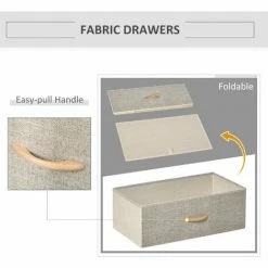 ● Linen-feel drawers can be removed and folded. Comes with handle to open and close
