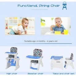 • 3-in-1 design, converts from a high chair, into a rocking chair and a booster seat