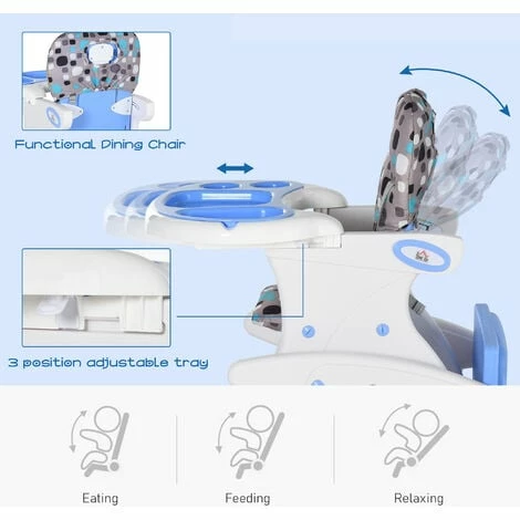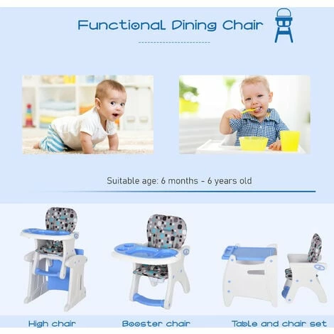Give your baby the best seat in the house with this high chair from HOMCOM. A 3-in-1 design, it converts from a full sized high chair, into a rocking chair and then into a toddler booster seat, meaning you are able to use this for more than just sitting at the table. It comes with a 5-point safety harness on the padded seat to keep them safely secured, an adjustable and removable tray with moulded sections for plates and cups, an adjustable-angle back and non-slip feet. Made from HDPE plastic, this multifunctional chair is tough and durable and can support up to 50kg with ease.