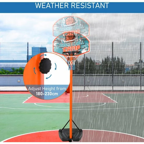 • Hoop height is adjustable between 180cm and 230cm, fitted with a backboard and hoop netting