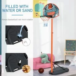 Let the fun and games commence with this basketball set from HOMCOM. Included in this set is a basketball hoop, blow-up ball and pump. The hoop is adjustable in height, so you can set it to the level best for your child (and their friends). It is fitted with a backbaord for the ball to bounce against, and netting on the hoop so it passes through gently. The base can be filled with 3.5kg water/4.5kg of sand, and is fitted with wheels, meaning it can be moved easily when empty, then filled up to hold in position. The perfect set to sharpen up their shooting skills. Recommended age range: 8-15 years.