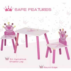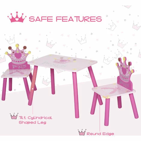 • Crown shaped chair backs. The whole set is covered in a ‘Princess’ wording and crown and dress print design