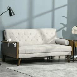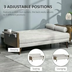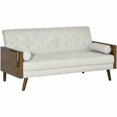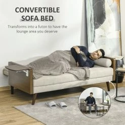 This three-seater HOMCOM sofa bed gives you space you deserve to relax and rest, day and night. The retro design creates a stand out look for something different in your living space. The futon bed comes with a 3-position backrest, which easily changes with its click-clack mechanism. Both the seat and backrest are thickly padded for comfort, with two long pillows for extra, plus support. The 3-seater sofa features an easy pull-up side table and completes with wooden legs for full support.