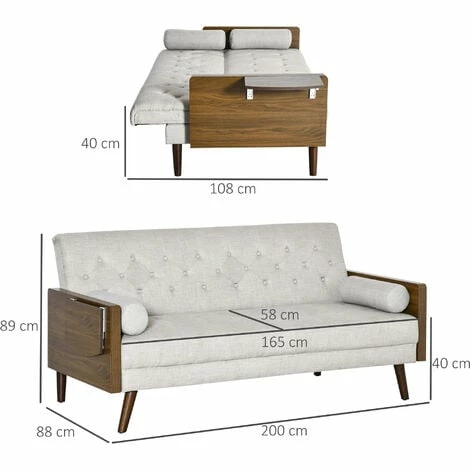 ● Fabric Composition: 55% Cotton, 45% Polyester● Overall Dimensions: 200W x 88D x 89Hcm (sofa), 163W x 108D x 40Hcm (bed)