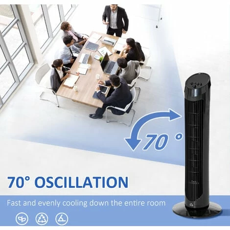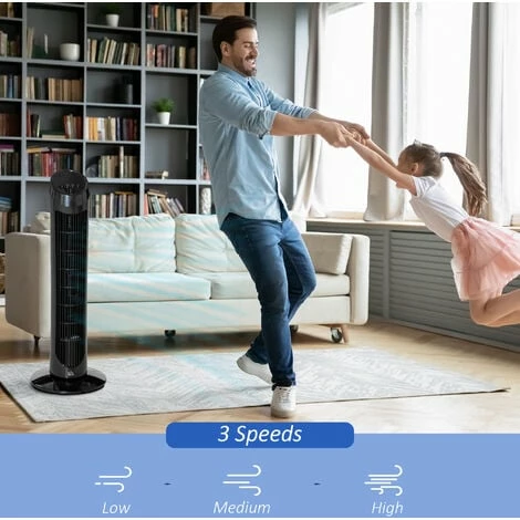 The HOMCOM tower fan offers a more effective way to circulate air around a room. 3 speed settings, selected by push-button controls, allow you to tailor the airflow perfectly for your needs. This standing fan is ideal for any kitchen or living room and features breeze with a space-saving design. Our oscillating fan is a must-have as the temperatures raise for the seasons ahead.