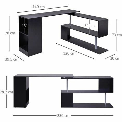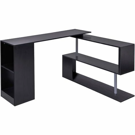 The HOMCOM L-shaped corner desk features an original 360-degree rotating design that can be adjusted to your needs and contains plenty of storage space. The modern look adds a touch of elegance to your office or home and is crafted from high-grade materials. Have a stylish working station, storage unit, and display case in one with this unique offering from HOMCOM.