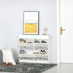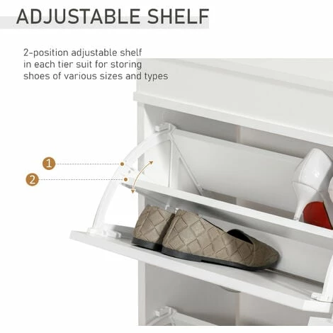 Too many shoes and worried about no place to store your favorite footwear? It’s time to organize your shoes, boots and high-heels with our HOMCOM shoe cabinet. The stylish and modern look will fit any decor of your room. Constructed of particleboard for stability. Adjustable board in each tier allows efficient space using. Anti-toppling design at the back of the shoe cabinet for adding safety and security. Keep your shoes and accessories neatly tucked away within this spacious shoe cabinet.