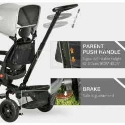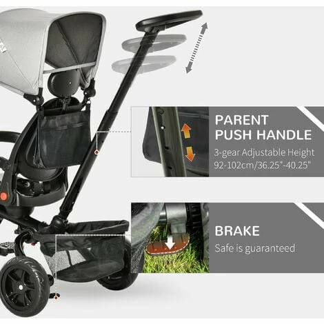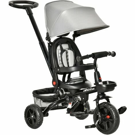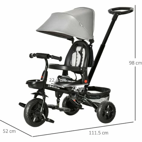 Make travel easy and fun with this kids tricycle from HOMCOM. Let them ride on their own or take control, using the removable push handle, which can be adjusted to suit your height. They’ll ride safely, as the removable fence and safety belt keeps them secure, whilst the foldable footrest is there for comfort when they’re pushed along. If it’s too sunny or raining, pop the canopy on for protection. Suitable for ages 1-5 years, its steel frame is durable and perfect for long term use.
