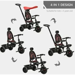 Make travel easy and fun with this kids tricycle from HOMCOM. Let them ride on their own or take control, using the removable push handle, which can be adjusted to suit your height. They’ll ride safely, as the removable fence and safety belt keeps them secure, whilst the foldable footrest is there for comfort when they’re pushed along. If it’s too sunny or raining, pop the canopy on for protection. Suitable for ages 1-5 years, its steel frame is durable and perfect for long term use.