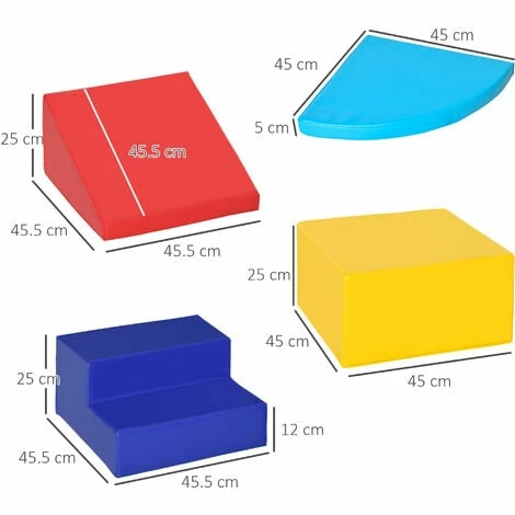 ● Yellow Block Dimension: 45L x 45W x 25H cm. ● Light Blue Block Dimension: 45L x 45W x 5H cm. ● Blue Block Dimension: 45.5L x 45.5W x 25H cm. ● Red Block Dimension: 45.5L x 45.5W x 25H cm.● Suitable Age: 1-3 years