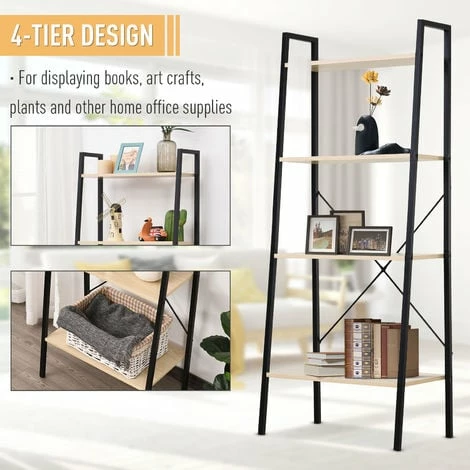 Let minimalistic design allow your pieces to take centre stage with this ladder shelving unit from HOMCOM. With a steel frame to ensure a tough standing structure, it is crafted into a four-tier design, where the wide shelves are spaced far apart for plenty of display room. The shelves are made from thick MDF with a melamine coating, making the surfaces smooth, even and easy to clean and this unit is finished with caps on the feet to protect the floor from marks. An easy way to bring some subtle character into your home.