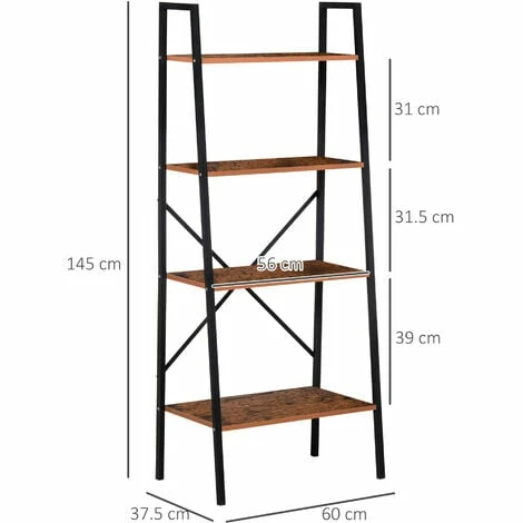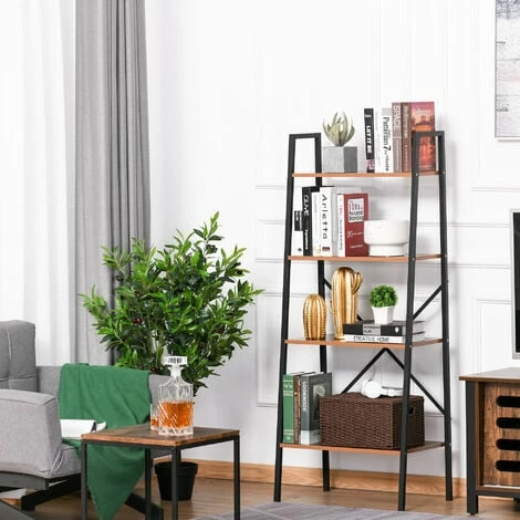 Let minimalistic design allow your pieces to take centre stage with this ladder shelving unit from HOMCOM. With a steel frame to ensure a tough standing structure, it is crafted into a four-tier design, where the wide shelves are spaced far apart for plenty of display room. The shelves are made from thick MDF with a melamine coating, making the surfaces smooth, even and easy to clean and this unit is finished with caps on the feet to protect the floor from marks. An easy way to bring some subtle character into your home.