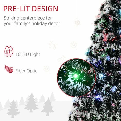 This holiday season, spend more time celebrating and less time maintaining and cleaning up with this Tall Pre-lit, Artificial Christmas Tree from HOMCOM. With this particular model, built in fiber optics and LED light that complement each other in a beautiful sparkling display to give off an authentic holiday feel. Each fiber optic branch and LED light create a striking lighting display that really makes this tree the centerpiece of the holiday.
