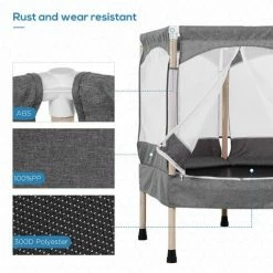 • All-around mesh cover for additional safety, catches your child if they bounce out of the area