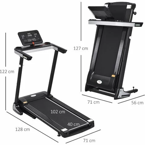 • Dimensions: 122H x 71W x 128Dcm. Folded: 127H x 71W x 56Dcm. Running mat: 40W x 102Dcm