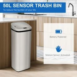 It’s time to upgrade your home and kitchen storage – chose this automatic motion sensor model from HOMCOM. A 50L capacity for use for all the family, its built-in infrared sensor ensures the lid can open automatically so it’s completely hygienic and can be used easily. A tough stainless steel body which is forever-stylish and easy to clean, it is crafted into a tall and slimline design to fit into small spaces easily. A sleek and easy way to keep your kitchen clean and tidy for the whole family. Requires 4 x AA batteries (not included).
