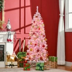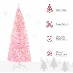 Christmas can now be pretty in pink with this fake tree, from HOMCOM. This artificial piece is made from tough PVC, so it can be used this season and next. The plastic is also flame retardant for fire safety. Our slim Christmas trees comes with lights – the pre-lit design means you can stand it how it is, or for the traditionalists, you can dress with your favourite decorations! Comes complete with metal base to stand steady and straight top branch for your angel or star topper.