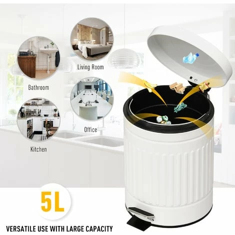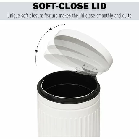 Made from bedrooms, offices, bathrooms and beyond, this small and compact bin from HOMCOM will ensure your home is never left untidy again. Using steel for a body which is tough and tactile, it is covered with a power coating to ensure extra strength and resilience in a fresh white hue for beauty and versatility. Five litres in capacity to provide plenty of holding room, it is fitted with an inner removable bucket for easy cleaning, a handle for hygienic lifting and non-slip bottom to keep it in place. The soft and quiet-close lid works together with the foot pedal for fuss-free opening and closing. A stylish and simple design which allows you to keep the area tidy easily.