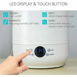 ● 3 adjustable mist level: 250/300/350ml/h and adjustable humidity: 45-90%