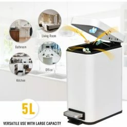 Made from bedrooms, offices, bathrooms and beyond, this compact and stylish rectangular bin will ensure your home is never left untidy again. Using steel for a body which is tough and tactile, it is covered with a power coating to ensure extra strength and resilience in a fresh color hue for beauty and versatility. Five litres in capacity to provide plenty of holding room, it is fitted with an inner removable bucket for easy cleaning, a handle for hygienic lifting and non-slip bottom to keep it in place. The soft and quiet-close lid works together with the large foot pedal for fuss-free opening and closing.