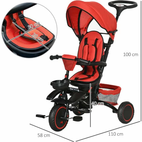 With this HOMCOM baby tricycle, you and your child will benefit. Taking them out becomes much easier, thanks to the adjustable push handle – you’ll push them along as they sit comfortably under the adjustable canopy, sheltering them from all weather. kids can also ride the tricycle on their own, which adds to fun – it also gives you a break from pushing them. When finished, you can fold it in seconds, place it in your trunk or store away, so you save space.