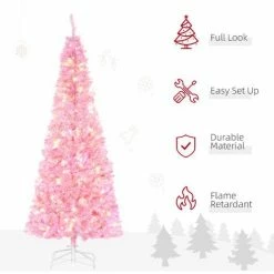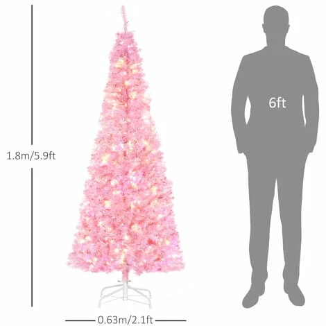 Christmas can now be pretty in pink with this fake tree, from HOMCOM. This artificial piece is made from tough PVC, so it can be used this season and next. The plastic is also flame retardant for fire safety. Our slim Christmas trees comes with lights – the pre-lit design means you can stand it how it is, or for the traditionalists, you can dress with your favourite decorations! Comes complete with metal base to stand steady and straight top branch for your angel or star topper.