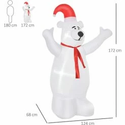 Create the ultimate festive Christmas display in your yard this holiday season with our large 1.72m tall Santa Bear with light up Merry Christmas words and Santa on sled character on its body inflatable from HOMCOM. Designed with ultra-durable polyester and featuring an internal white LED glow, this holiday display will create a festive focal point in your yard. Self-inflating in minutes, this display plugs into any standard outlet creating a super simple set-up process that anyone can do.