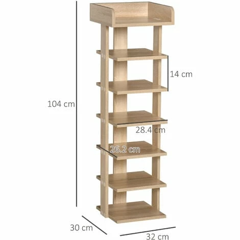 It’s time to organize your shoes now with our HOMCOM shoe rack. The simple and modern look with oak colour finish will fit any decor of your room. You can put shoes, keys, photo albums in shelves and top surface. Open design make you easily find your shoes at once. Good air circulating avoid bad smell. Can be used as a storage rack in living room, bedroom, entryway, etc. Keep your shoes and accessories neatly tucked away within this spacious shoe storage rack.