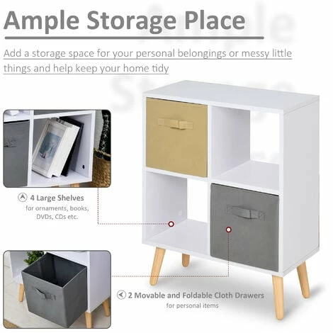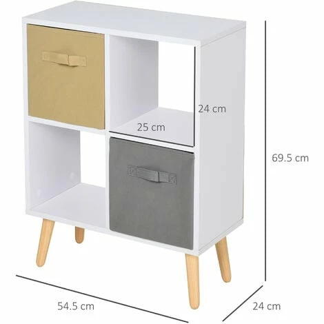 Let style and storage effortlessly blend into one with this freestanding cabinet from HOMCOM. It features cloth drawers for discreet organisation, with handles for easy opening and closing, with the option of taking them away if not required. The open compartments cater for display of your belongings. Made from particle board for everyday wearability, it is finished with four wooden legs, allowing air to circulate for freshness and helping prevent damage to the bottom of the frame.