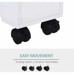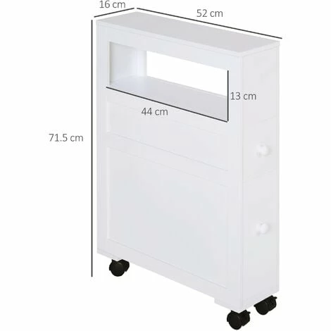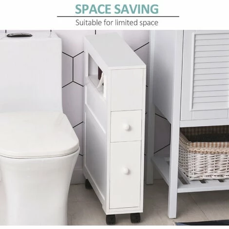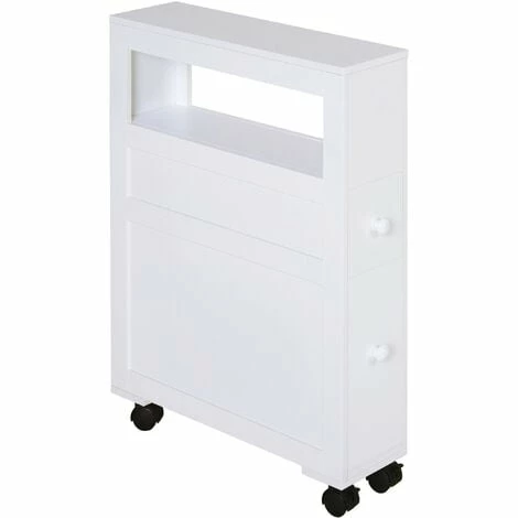 Make easy storage work for you, even in the smallest of spaces with this bathroom cabinet from HOMCOM. Pure white in colour, the frame is made from MDF to ensure it is reliable and sturdy, even with everyday use. It’s made with a small top drawer, a larger bottom drawer and an open side compartment – offering a moderate amount of space to keep the area tidy and organised. Thanks to the four castor wheels on the bottom, it’s also very easy to move it around, whilst the two locks ensure it keeps in place when needed. A pretty, portable and practical piece you’ll love having in your home.