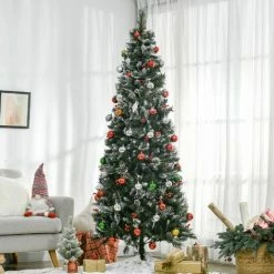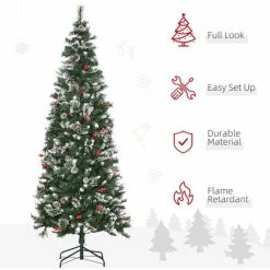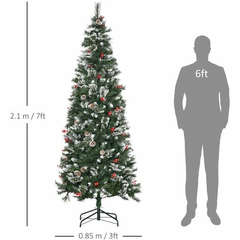 This HOMCOM fake Christmas tree completes your seasonal look at home. The artificial design means you can use it for years to come – saving money in the process. Snowy tips, faux berries and pine cones and an unlit design for a design you leave bare for a more natural direction, or dress up to your liking. A tall top branch to place your star/angel topper. Three pieces to fit together easily, with a metal base included to keep the snow Christmas tree stand steady.