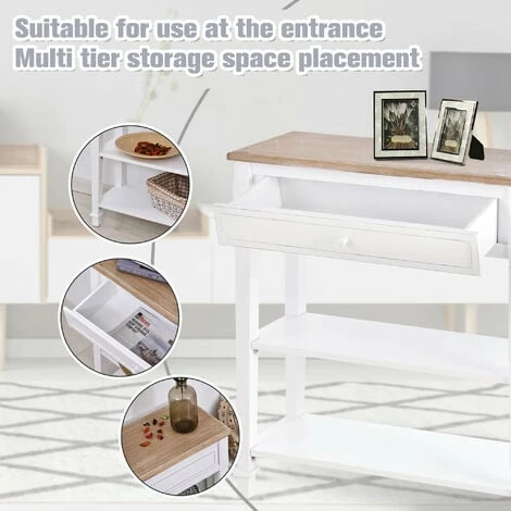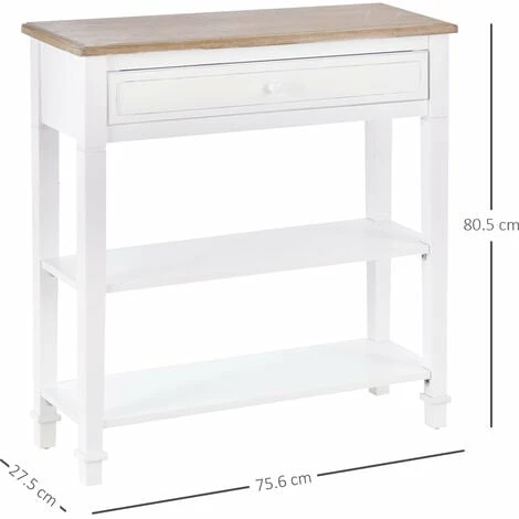 Give your home something it will adore with this console table from HOMCOM. Made from MDF, the frame is durable and reliable, crafted into an elegant design to blend in its surroundings with ease. It features a pull-out drawer and two bottom shelves for plenty of storage, with an oak tone worktop for display or photos and ornaments. It’s finished with a small round knob on the drawer and thick legs for a balanced structure.