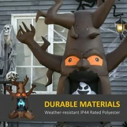 Add the perfect touch to your Halloween parties and events with this inflatable decoration from HOMCOM. Fun in design, this ghost tree is made from durable and weather-resistant polyester with an IP44 rating, meaning it is safe to use outdoors – perfect for the temperamental weather we are so used to in October. Three bright LED lights and a fan are placed inside, allowing the inflatable to move whilst lit up, creating an eerie and fun atmosphere wherever it is placed. Powered by the mains to keep it going all day and night long, it self-inflates in seconds and deflates just as easily. Great for kids and bringing out the kid in the adults.