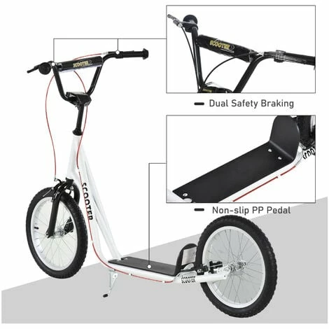 Glide outdoors in style with this light blue kick scooter from HOMCOM. It’s made with dual front and rear braking system, which allows you to stop immediately whilst riding along, with the low platform and two big treaded rubber wheels making the journey smooth and enjoyable. Using steel for the structure to handle up to 100kg, the handlebar can be adjusted between 90cm and 96cm so you can set to a comfortable holding height. It’s finished with soft foam on handle bars and a lift-out stand to keep in place when not in use.