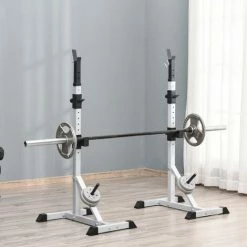 Bring gym workouts to your own home with this barbell rack from HOMCOM. Formed heavy-duty steel, the frames are tough and sturdy for long-lasting use, able to hold up to 200kg with ease. They can be set to different levels with a ‘J’ shaped bracket on the top for extra room. Both racks are finished with ‘H’ shaped bases to ensure stability, with rubber caps on all sharp edges for safety. An excellent way to work on squats, bench presses, lunges, deadlifts and more during any time of the day.
