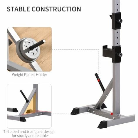 • Three barbell holders – a ‘J’ bar on the top, one in the middle and one at the bottom, giving each a stable place to rest when not in use