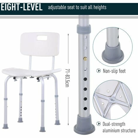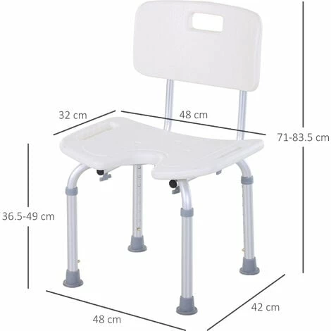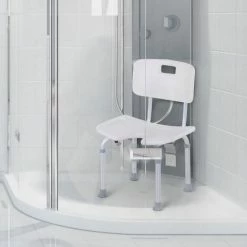 Made for assistance in the shower or bath, this chair from HOMCOM is perfect for the elderly or those who require extra assistance whilst showering or bathing. Made from aluminium, the four legs are resilient to water damage, keeping the chair stable and durable and supporting up to 136kg in weight. Adjustable to eight different heights, this chair helps you find the most comfortable and safe position to sit, with the ‘U’ shaped plastic seat giving a solid surface to sit. Drainage holes all over the seat prevent water build-up. It’s finished with handles to carry easily and non-slip foot pads to keep safely in position.