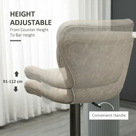 Inject chic style into your kitchen counter or bar dining area, thanks to the HOMCOM kitchen stool. A set of two – create a matching look or separate over the dining, lounge and conservatory areas. Each seat features a high back, curved seat and padding for plenty of comfort and support. The 360° swivel moves with your body, its height is adjustable for extra comfortable points too. A steel frame for plenty of support, finished with bottom bars to rest the feel.