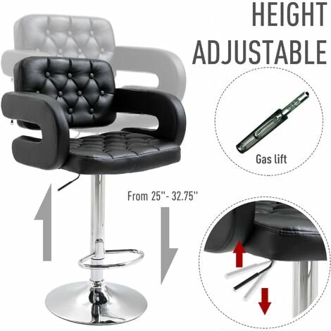 This HOMCOM adjustable stool comes with a full back support with a modern style, it is made with PU and a chrome base. The kitchen stools with backs can also be moved and adjusted in height and has a foot support for comfort, the bar stool has a stylish and modern feel with a comfortable seating position. It can be used in the kitchen with your breakfast bar, in the lounge and would suit any room décor.
